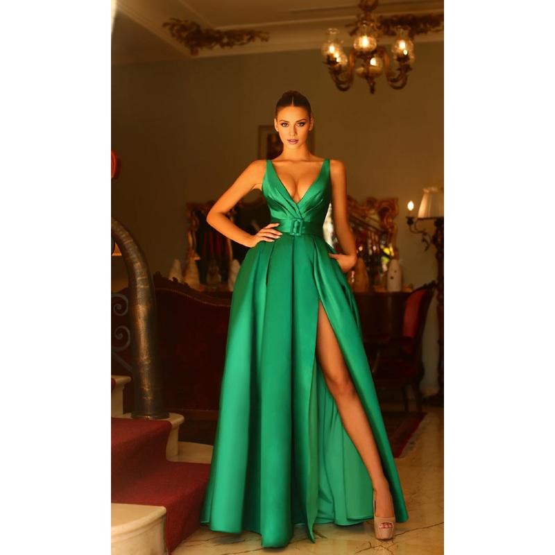 Be the first to review “Jimiss A-line deep V-neck off shoulder side slit and floor length evening dress”