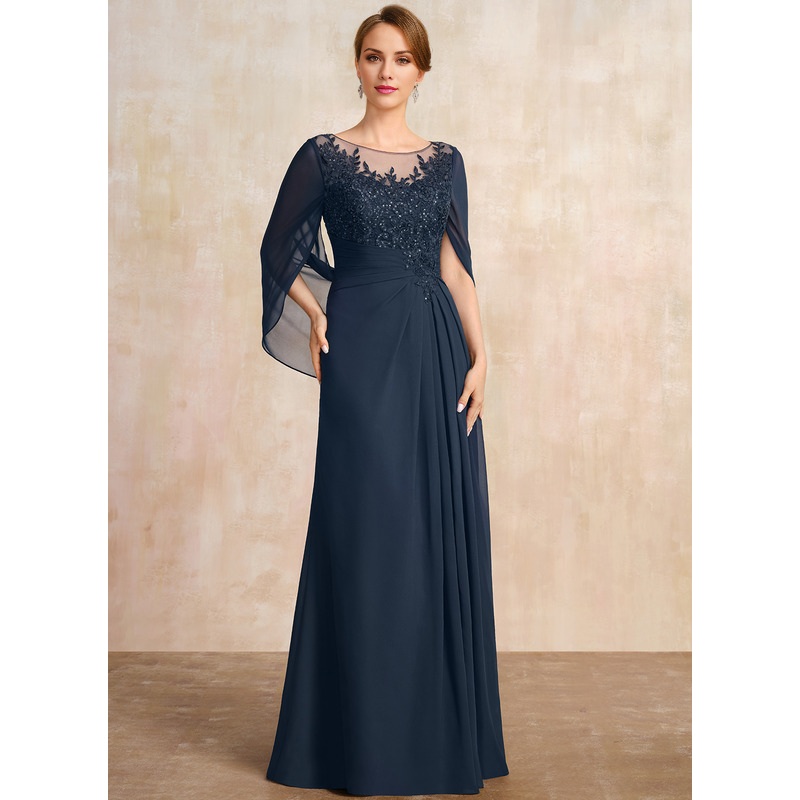 Jimiss A-shaped Scoop Illusion floor lace chiffon with sequins and pleats, mother of the bride dress