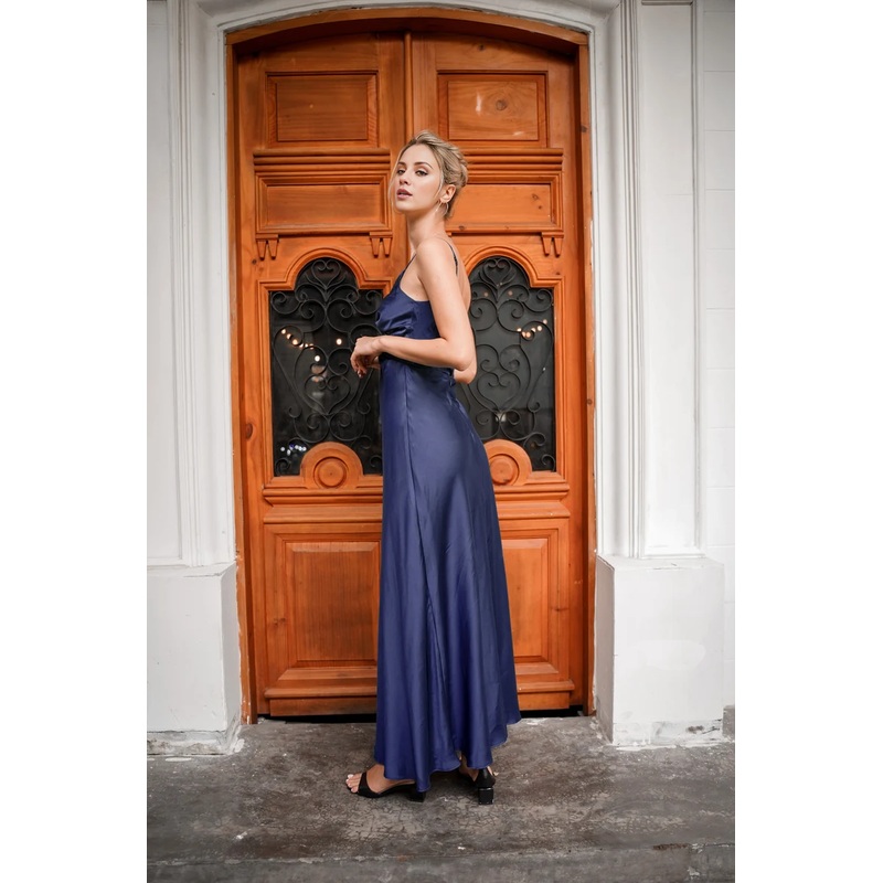 Jimiss – backless deep V-thin shoulder strap satin and floor length Prom dress