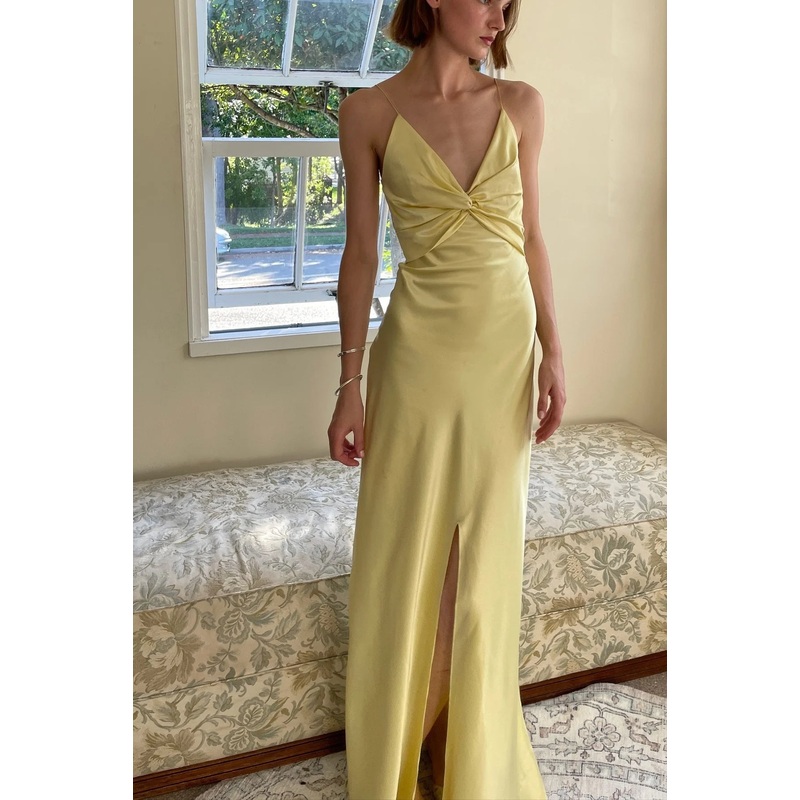 Jimiss chic yellow thin shoulder strap long Prom dress