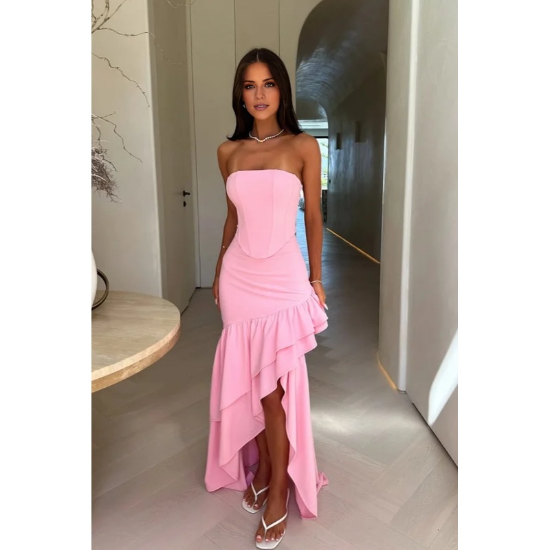 Jimiss Cute Strap Off Shoulder Collar Ruffle Side Split Ball Dress
