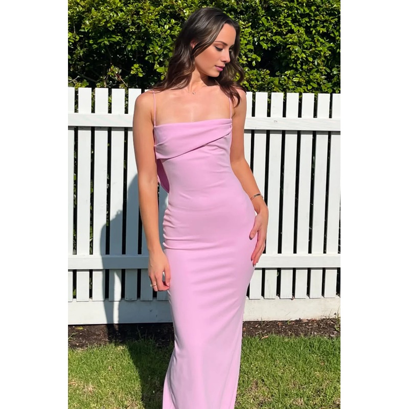 Jimiss Fashion Tight Thin Shoulder Strap Ruffle Pink Long Prom Dress