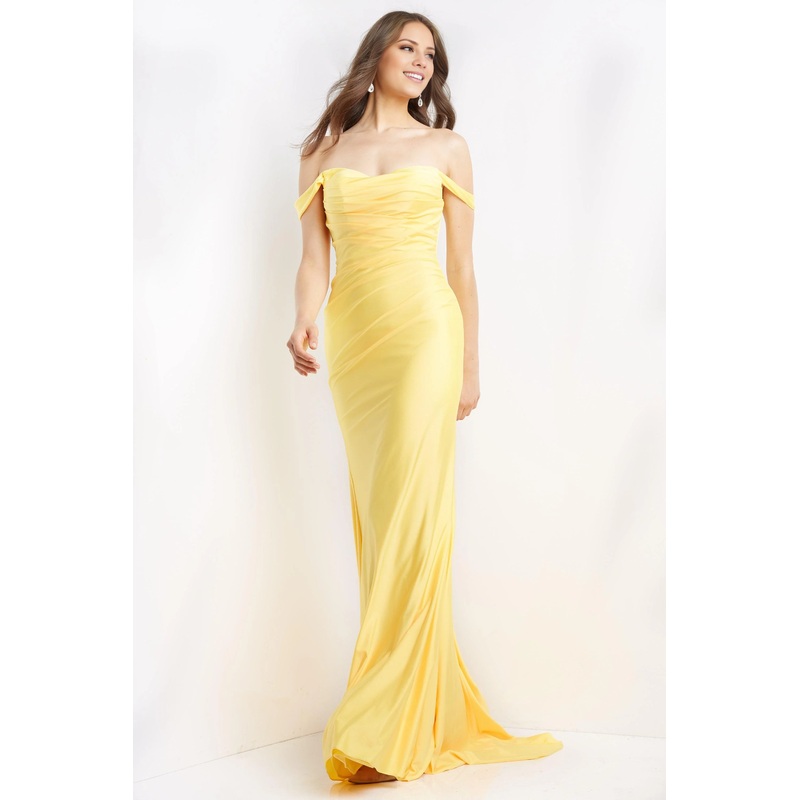 Jimiss off shoulder chicken heart neckline sleeveless and floor length Prom dress