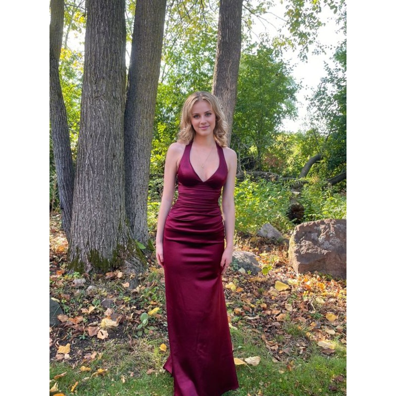 Jimiss Simple Wine Red V-neck Long Party Dress Formal Prom Dress