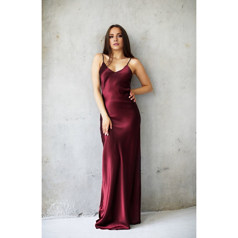 Jimiss slim shoulder strap V-neck backless and floor length Prom dress