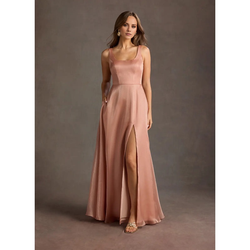 Jimiss square neckline satin side slit backless and floor length Prom dress