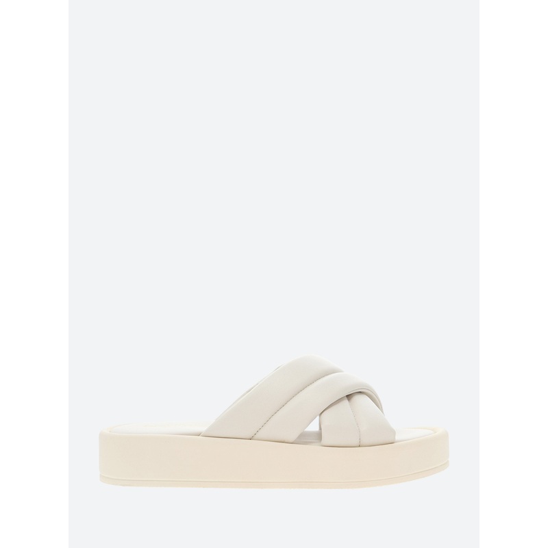 gravitypope Joan sandals with channel quilted crisscrossing straps across the vamp. Sits on a leather covered wedge.Crisscross straps at the vampSlip-on styleOpen toeLightly cushioned footbedMeasurements:25mm wedgeMaterials Upper: leatherLining: leatherOut