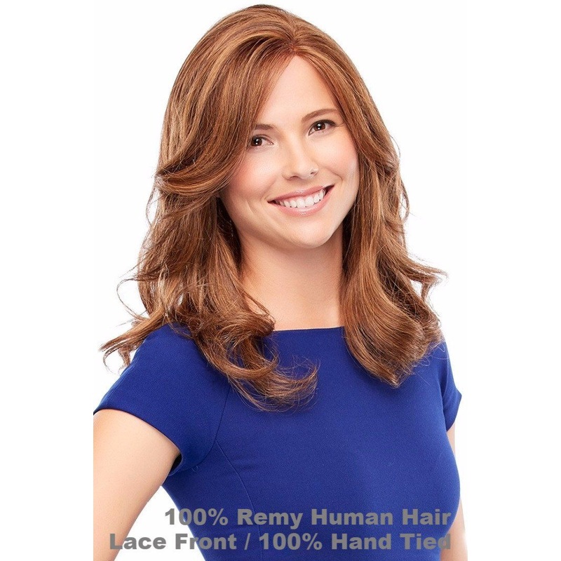 Wig features:100% Remy Human Hair,Lace Front, 100% Hand TiedBeauty in strength defines this long layered style wig made with 100% Remy human hair. Enhanced by a natural looking lace front, the non-slip hand tied cap offers supreme scalp comfort.Swiss Lace