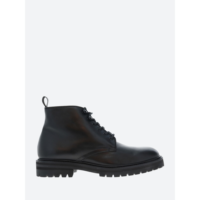 Sophistication and style meet versatility in Officine Creatives Joss 001 leather boots. The welts of the stacked soles extends along the black leather uppers to add a touch of volume and visual interest.Ankle heightLace-up closurePull loop at the collarTap