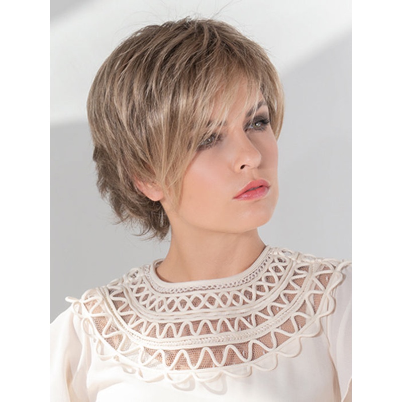 Joy by Ellen Wille is designed to offer a trendy, elegant style. This short-length cut has a side-swept fringe that cascades along the side of the face. There are texturized layers in the back and nape area that can be styled flipped out or under. The ligh