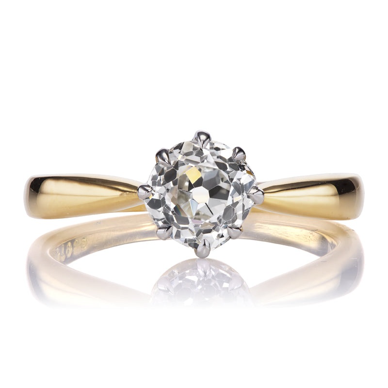 Bright White 1 Carat Old Mine Cut Diamond in Two-Tone Tapered Setting