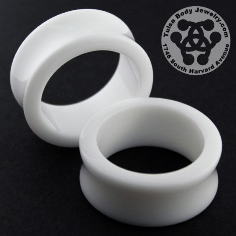 These double flare tunnelsare made from acrylic. They have a wearable area of 1/2″ between flares. Choose your size and color below.