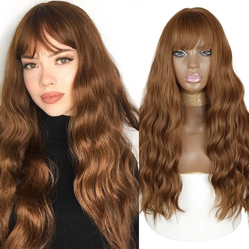 Justine Long Water Wave Synthetic Wigs With Bangs