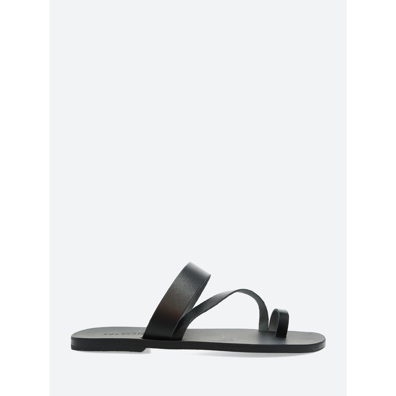 A slip-on thong sandal, with a fixed cross-strap at the vamp, made from an elegant smooth leather.Cross-strapped thong sandalSlip-on styleFlat footbedOpen toeMaterialsUpper: leatherLining: leatherOutsole: rubberMade in GreeceSize GuideListed in Italian siz