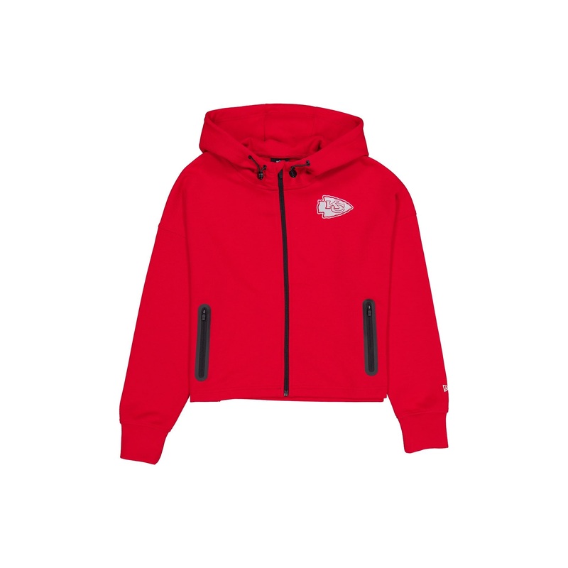 The Kansas City Chiefs Active Women’s Full-Zip Hoodie features a reflective silicone Chiefs patch at the left chest.