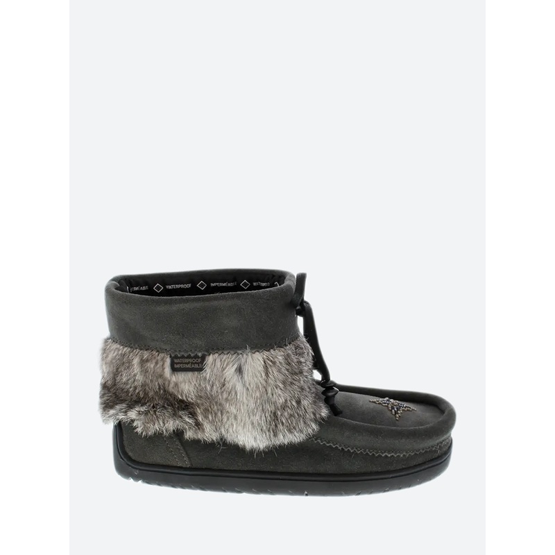 Keewatin is a Cree word that means north wind and is also one of the Cree names for the North Star - the going home star. The stunning Keewatin takes you out and about in the world while bringing you warmly home again.Ankle height muklukFur liningBead deta