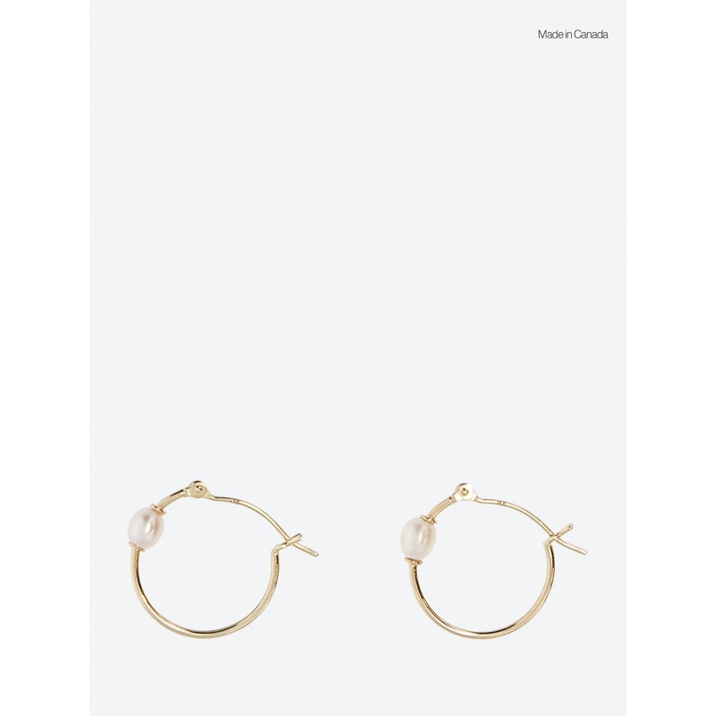 Handcrafted in 14-karat gold, a pair of small gold hoops with a sweet keshi pearl on the front. It's modern, dainty and an everyday must.Solid 14k goldFreshwater keshi pearls measure 3-3.5mmDiameter 3/4"Handcrafted locally in Vancouver, BC