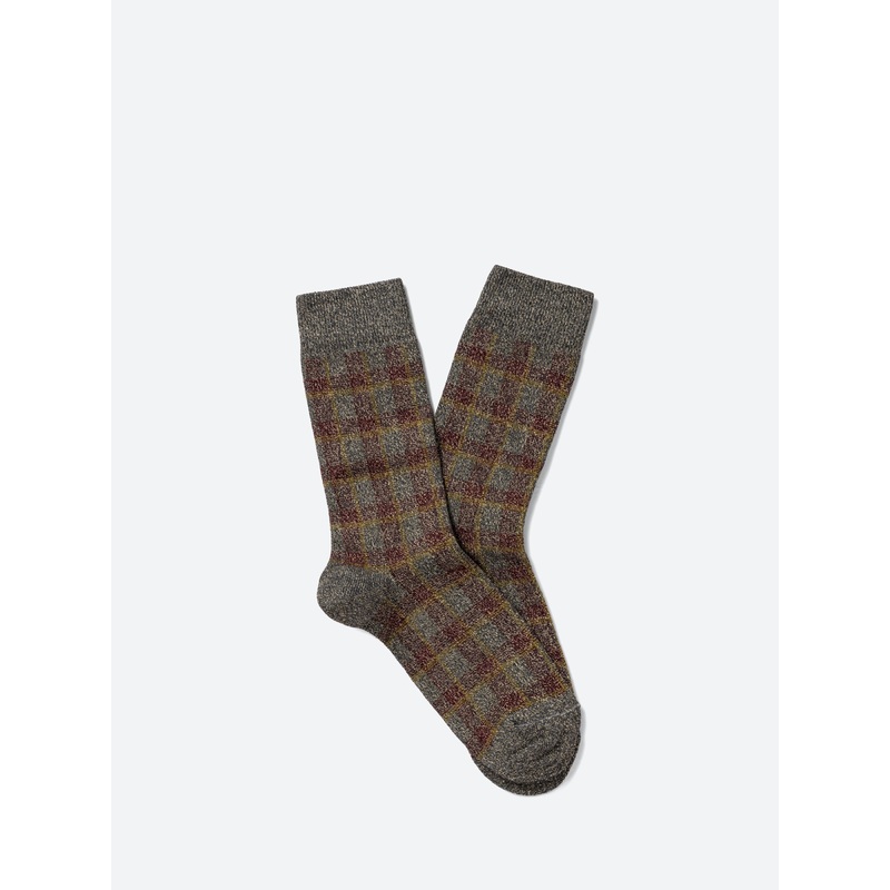 Tartan socks with subtle sparkle for a cool and elegant tomboy look.Calf height socksTartan patternSubtle sparkleHeight: 19 cmMaterialsFabric Content: 41% cotton, 37% polyamide, 20% metalized polyester, 2% elastaneMade in FranceSize GuideOne size fits most