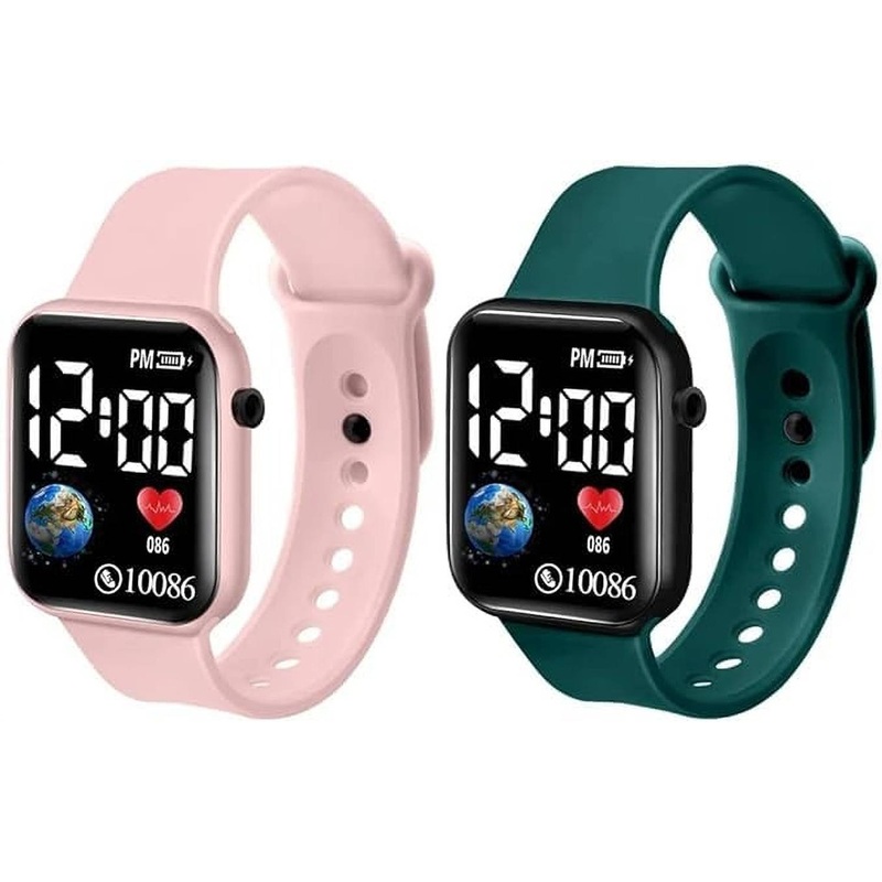 BrandKIMYDisplay TypeDigitalIdeal ForBoys & GirlsStyle CodeKIMY_Fashionable LED Wristwatch White _ BlueSeriesThe most recent and cutting-edge design for a black LED display.OccasionCasualMovementLCDPack of2Model NameKids' sports watch: good quality silicon
