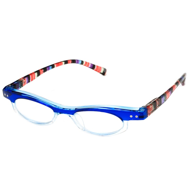Womens funky cat eye reading glasses available in the strengths listed above and in the following colors: Black, Blue, Green & Purple.
