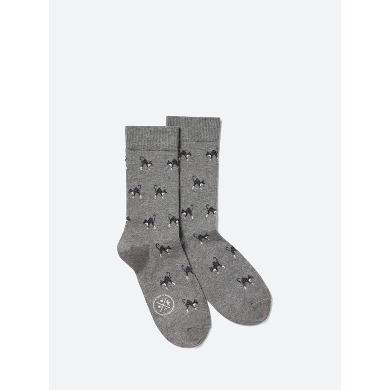 For cat lovers, these stretching cat pattern socks are inspired by Koko, the Siamese cat from Royalties.Calf-height socksRibbed cuffAll-over cat printHeight: 19 cmMaterialsFabric Content: 84% cotton, 14% polyamide, 1% elastane, 1% polyesterMade in FranceSi