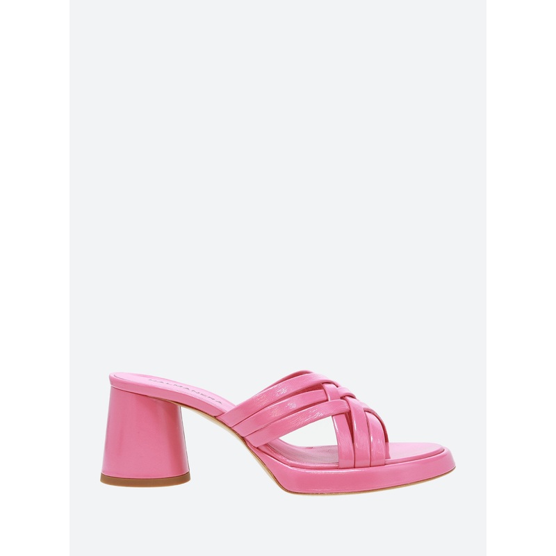 Crafted with woven leather straps, this versatile slide features a tubular wrapped heel for an elevated look.Woven straps at the vampSlip-on styleLeather footbedRound toeMeasurements:60mm heelMaterialsUpper: leatherLining: leatherOutsole: leather with rubb
