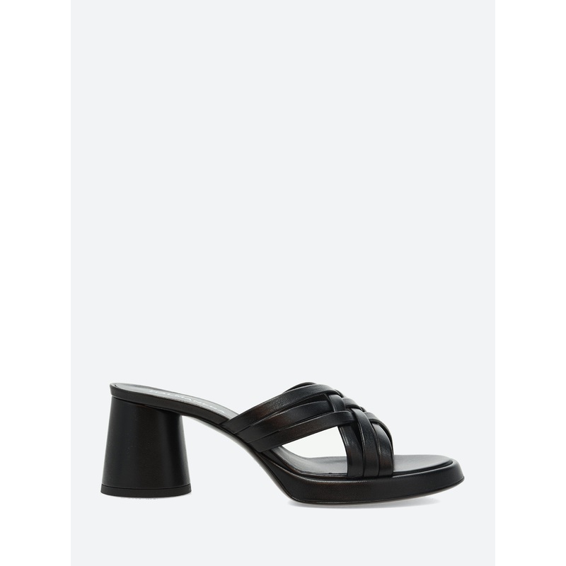 Crafted with woven leather straps, this versatile slide features a tubular wrapped heel for an elevated look.Woven straps at the vampSlip-on styleLeather footbedRound toeMeasurements:60mm heelMaterialsUpper: leatherLining: leatherOutsole: leather with rubb
