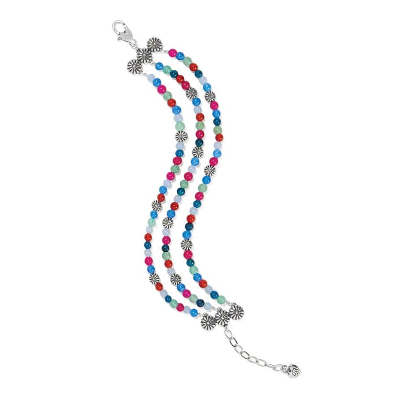 Silver beads in the shape of Kiki chrysanthemums accent this semi-precious beaded bracelet that was inspired by our designers trip to Kyoto, Japan.