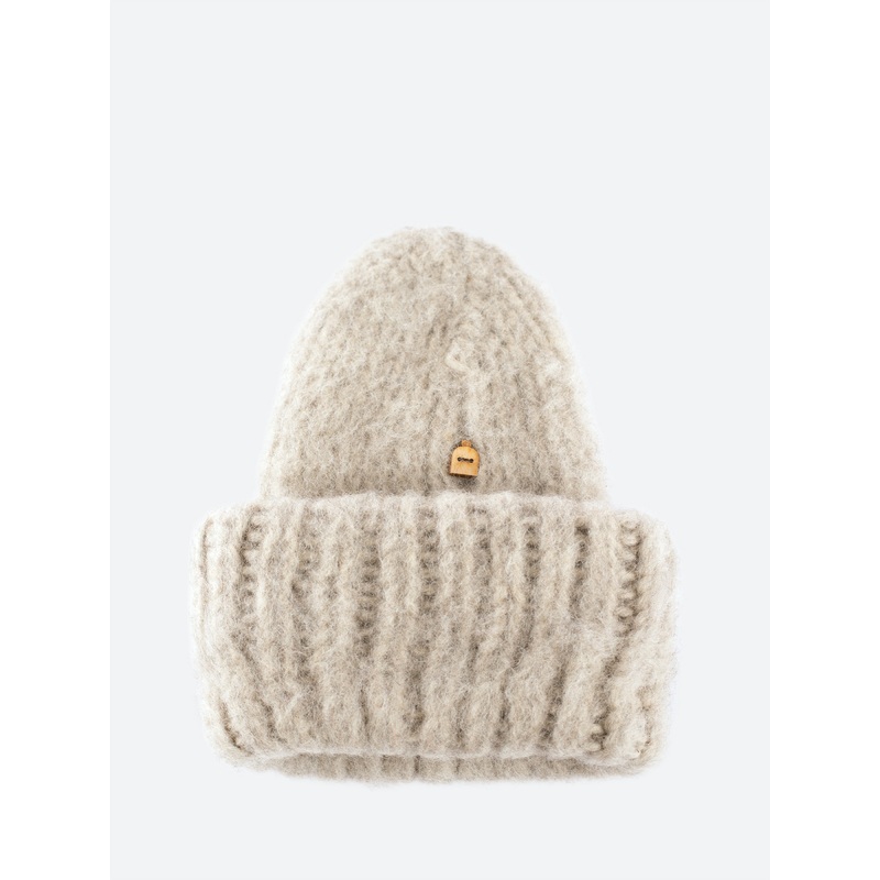 Hand-knit from chunky, undyed wool, this oversized beanie has been brushed for a soft, fluffy finish.Fluffy beanieRibbed knitTurn-up cuffWooden logo buttonUndyedMaterialsFabric Content: 100% woolMade in FinlandSize GuideOne size fits most.For additional si