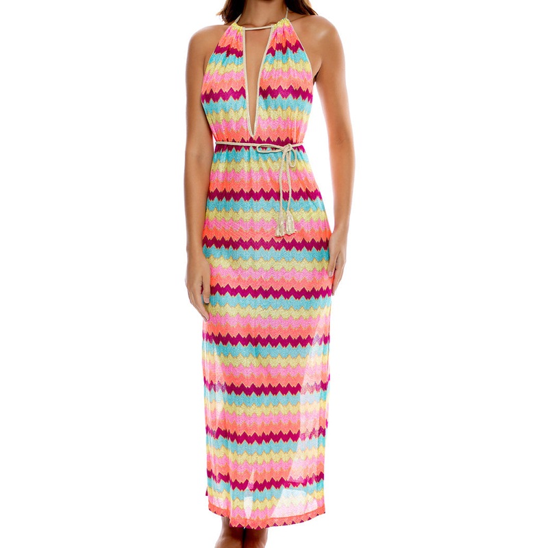 *Plunging V-Neck String Halter Maxi Dress