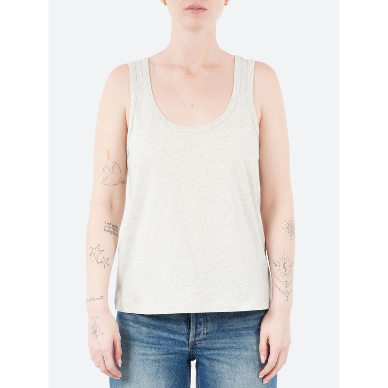 Heather ecru tank top in organic cotton.