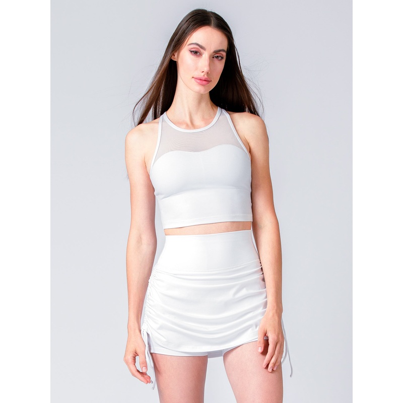 Be the first to review “LABRYINTH CROPPED TANK, WHITE/WHITE MESH”