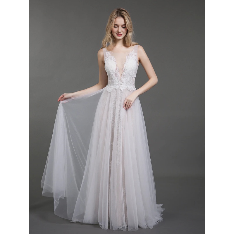 Lace chiffon minimalist beach wedding dress