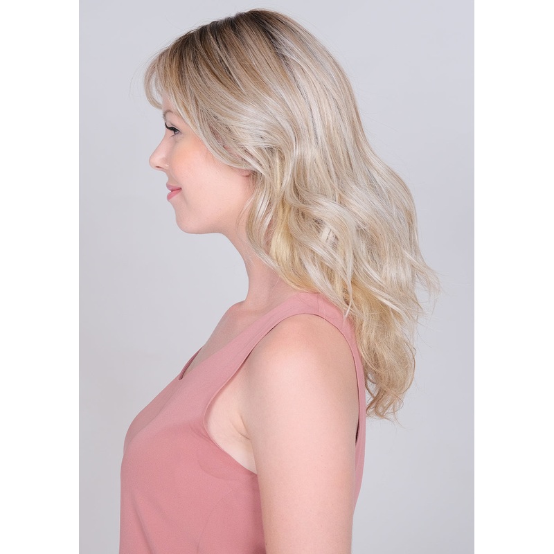 Luxurious hand-pulled strand-by-strand full monofilament 16″ long hairpiece that gives the effect of a full cap wig. Enjoy the comfort and lightweight of a deluxe full lace front hairpiece. Added extra 6 layers of hair in the back of the piece gives just a little more volume and coverage without wearing a full wig. Even if you have a perfect amount of hair, this piece provides a just-left-the-salon look in an instant without blow-drying or styling. Built-in 4 snap clips make it easy to secure. Now with the new 16″ and a new original curl pattern along with our first layered long curtain bang style, you have more freedom to create a variety of styles with BelleTress original lace Front Mono top Peerless 16