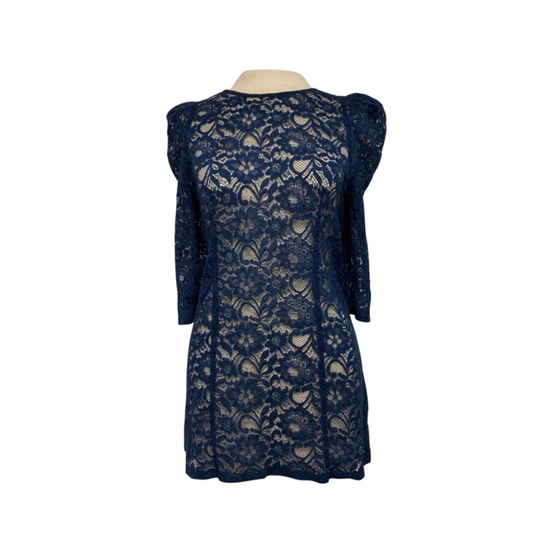 Women’s lace, quarter length sleeve, button in back hip length blouse.