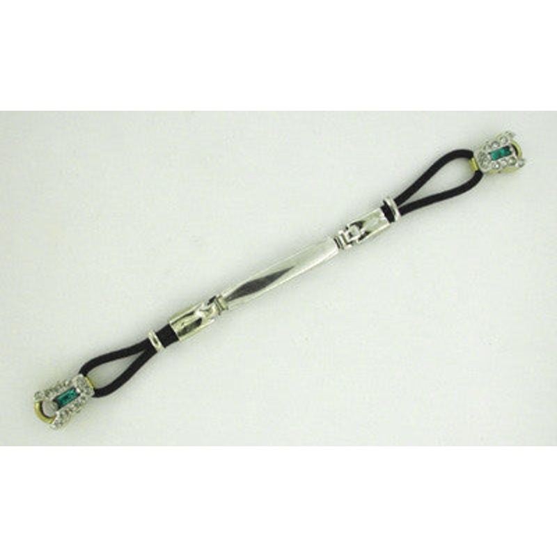 This lovely vintage rhinestone estate watch band is the perfect adornment for your vintage ladie’s wristwatch. It features sparkling white and turquoise rhinestones set in white metal and yellow goldtone lug attachments. With a secure locking stretch clasp, it can be sized to fit any wrist by changing the black cord strap.