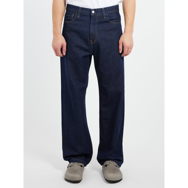 The Landon Pant is made of Robertson denim, which is a heavyweight fabric that has been stone-washed for a softer feel. It is cut in a loose tapered fit with a regular waist, meaning that the pant has a roomy upper leg which tapers below the knee.