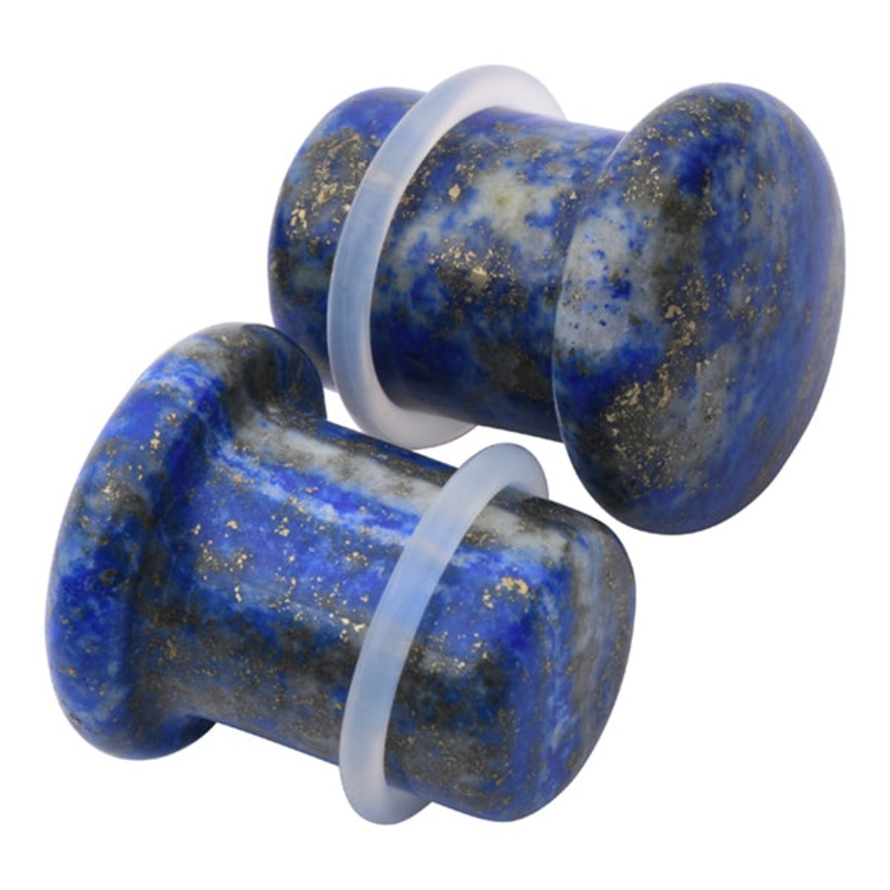 These single flare lapis plugs have a wearable area of 3/8" between the o-ring and flare. Two clear silicone o-rings are included. Choose your size below.[click here for replacement o-rings]