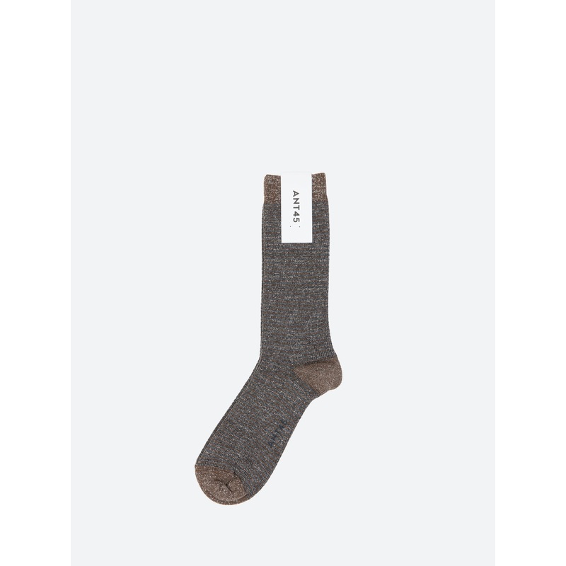 Short striped socks in lurex cotton with ribbing throughout.Crew length socksRibbed knitSubtle sparkleReinforced heel and toeMade in ItalyMaterialsFabric Content: 89% cotton, 11% metallic fibersSize GuideOne size fits most.EU 36-41For additional size infor