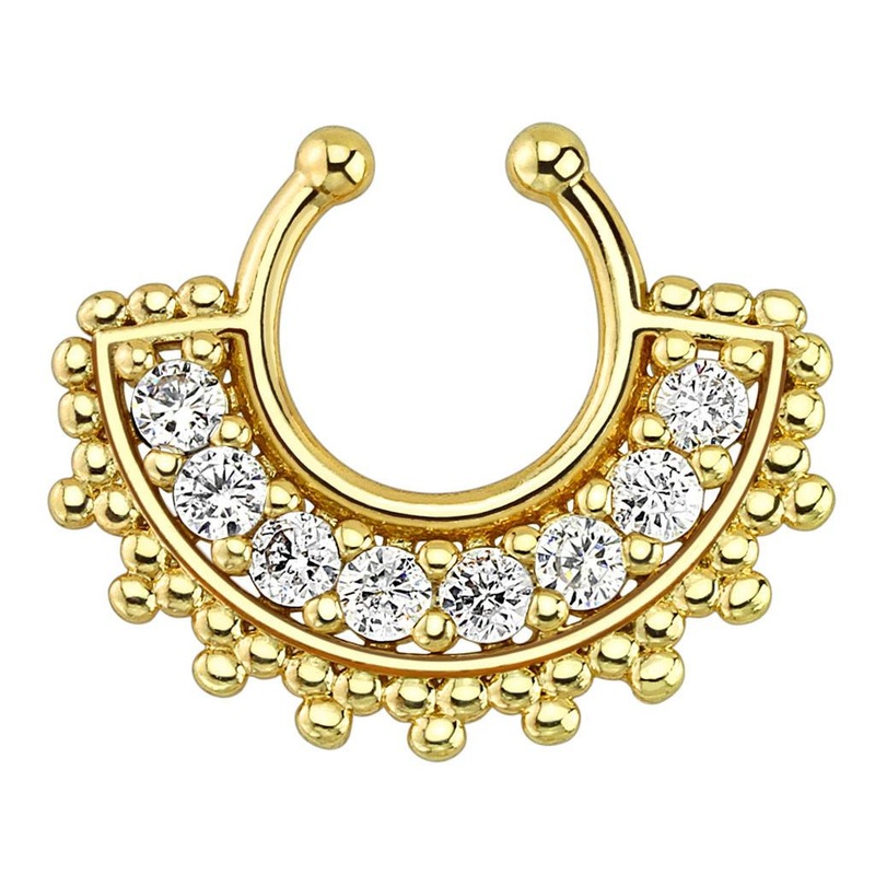 Be the first to review “Large Paved Gem Fan Gold Non-Piercing Septum Ring One Size Fits All Clear Gold Stainless”
