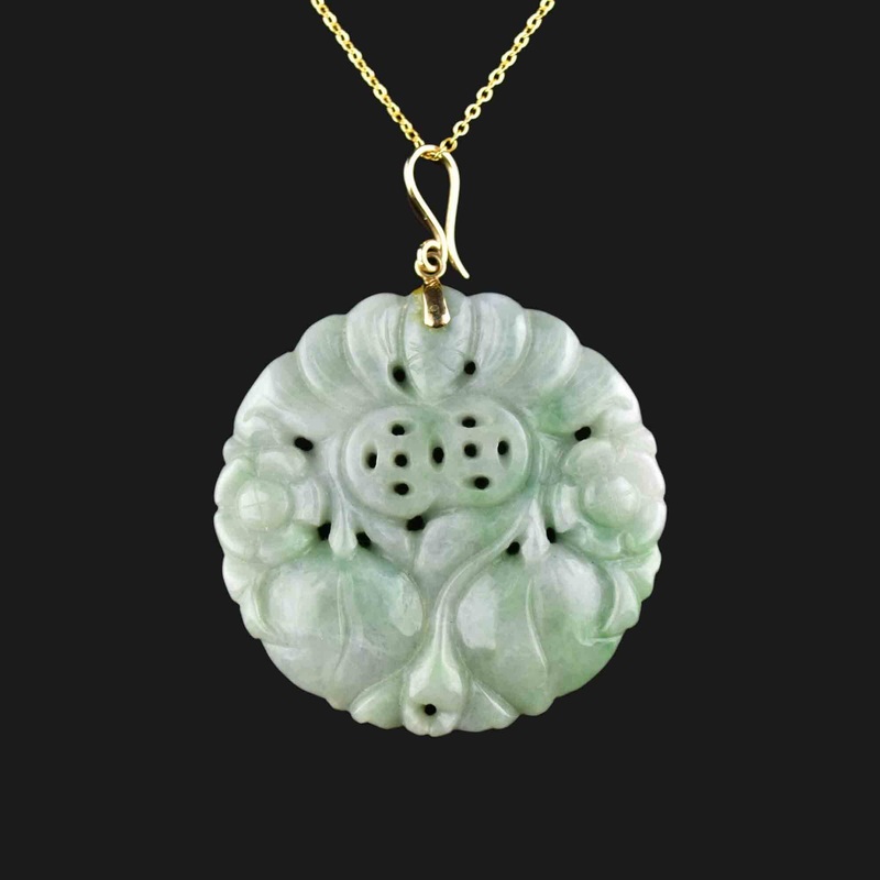 Be the first to review “Large Vintage 14K Gold Carved Jade Pendant Necklace”