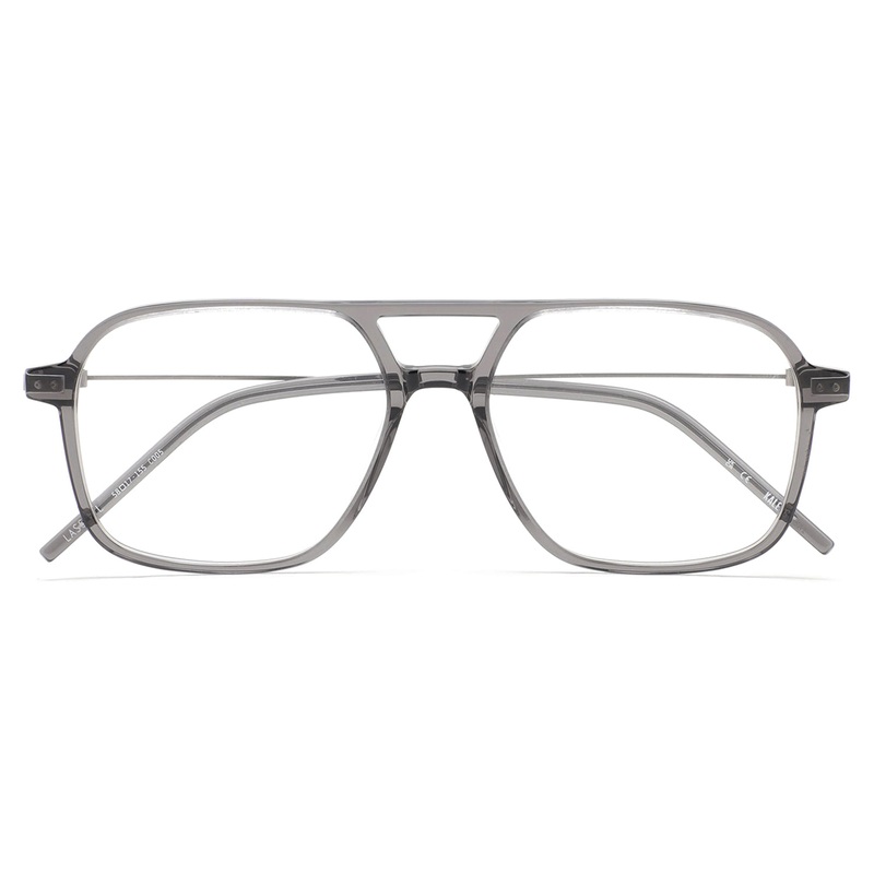 The Kaleos // Lassen L incorporates the innovative screw-free hinge, enhancing both durability and flexibility while maintaining a sleek aesthetic. This aviator optical frame is crafted from a high-density acetate frame front and stainless steel temples wi