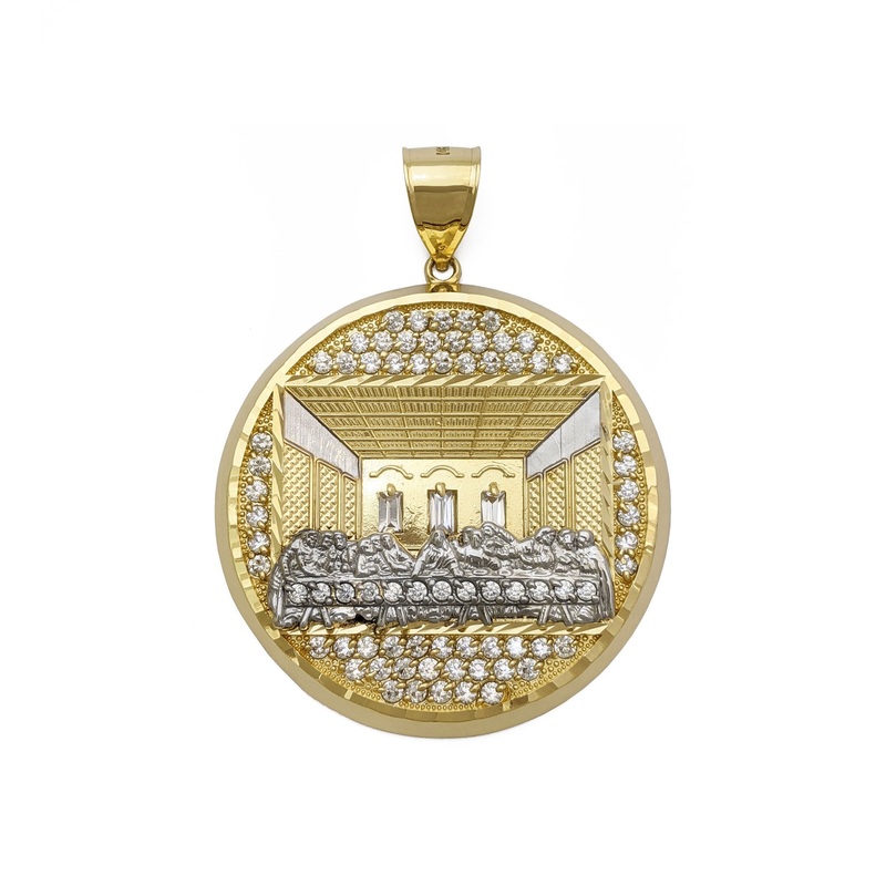 Precious Metal: 14 KaratTwo-Tone Gold (Yellow and White)Gemstone: Cubic ZirconiaRound Shaped: WhiteStones may be upgraded upon requestHeight: 65.15 mm* (including the bail)Diameter: 50 mm*Approx. Weight: ~ 20.9 grams**All weights and measurements are appro