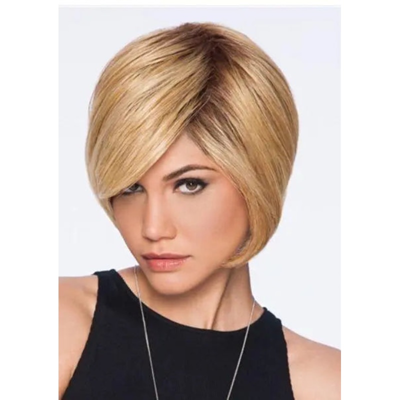 This modern chin length bob wig features bangs that are swept to the side, while ends are sleek and taper in to the nape for a captivating new look.