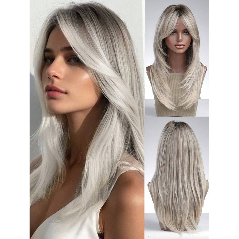 Transform your everyday look with this Layered White Blonde Synthetic Wig. Its long, versatile design and fringe detail will add an elegant touch to any outfit. Crafted from high temperature fiber, this wig is not only stunning, but also sturdy for daily use. Perfect for both casual wear and special events, such as school homecoming season or cosplay.