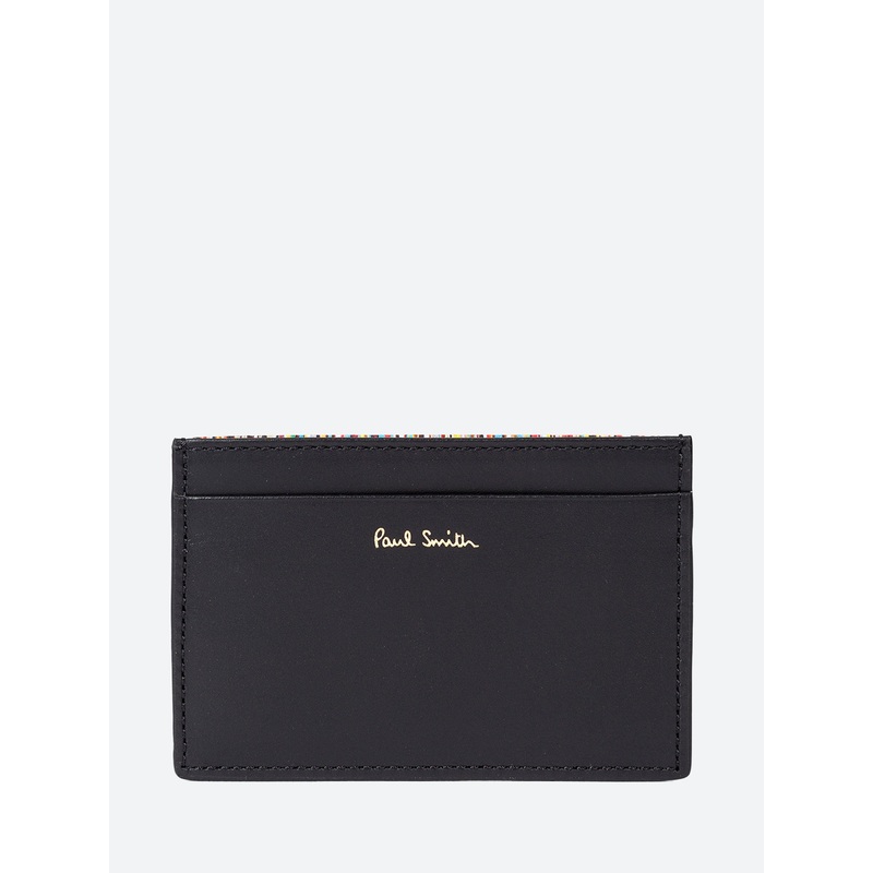 Black credit card holder made in Italy from premium 100% leather with classic signature stripe reverse and a central compartment for folded notes or receipts.Embossed Paul Smith signatureLined in black fabricMaterialsMaterial: 100% leatherMade in ItalySize