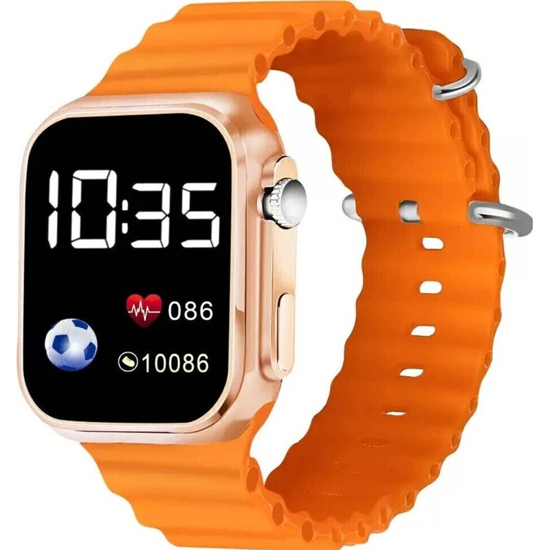 BrandLEATHERTONEDisplay TypeDigitalIdeal ForBoys & GirlsMechanismDigitalStyle CodeUltra DigitalSeriesUltra Digital LED Watch without connetivityOccasionCasual, Formal, Party-WeddingMovementDigitalPack of1Sales Package1 Watch with watch BoxShock ResistanceYesModel NameUltra FBStrap ColorOrangeNet Quantity1TrendAll Black, Black Dial, Time & DateWatch FeaturesWater Resistant, Date DisplayDial ColorBlackDial ShapeSquareStrap ColorOrangeWorld TimeNoDual TimeNoStrap TypeSiliconeStrap Material for RefinerSiliconeStrap DesignSilicone StrapCase/Bezel MaterialSiliconeWater Resistance Depth30Power Reserve IndicatorNoClasp TypeBuckleWidth38 mmThickness40 mmDiameter8 mmWeight50 gDomestic Warranty0 YearWarranty PeriodNACovered in WarrantyNANot Covered in WarrantyNAWarranty SummaryNAIntroducing the Ultra Digital LED Watch, the perfect fusion of style and functionality. This sleek timepiece is designed for the modern individual who values both precision and aesthetics.Featuring a crisp LED display, the Ultra Digital LED Watch provides at-a-glance access to both the time and date, ensuring you’re always punctual and well-informed. With its minimalist design and bold digits, reading the time has never been easier or more stylish.Crafted with precision engineering, this watch offers reliable timekeeping that you can trust day in and day out. Whether you’re heading to a business meeting or meeting up with friends, the Ultra Digital LED Watch ensures you’re always on schedule.Its durable construction and water-resistant design make it suitable for everyday wear, while the adjustable strap ensures a comfortable fit for any wrist size. Choose from a range of sleek colors to match your personal style and make a statement wherever you go.Elevate your accessory game with the Ultra Digital LED Watch where timeless design meets modern functionality.Manufacturing, Packaging and Import InfoRead More