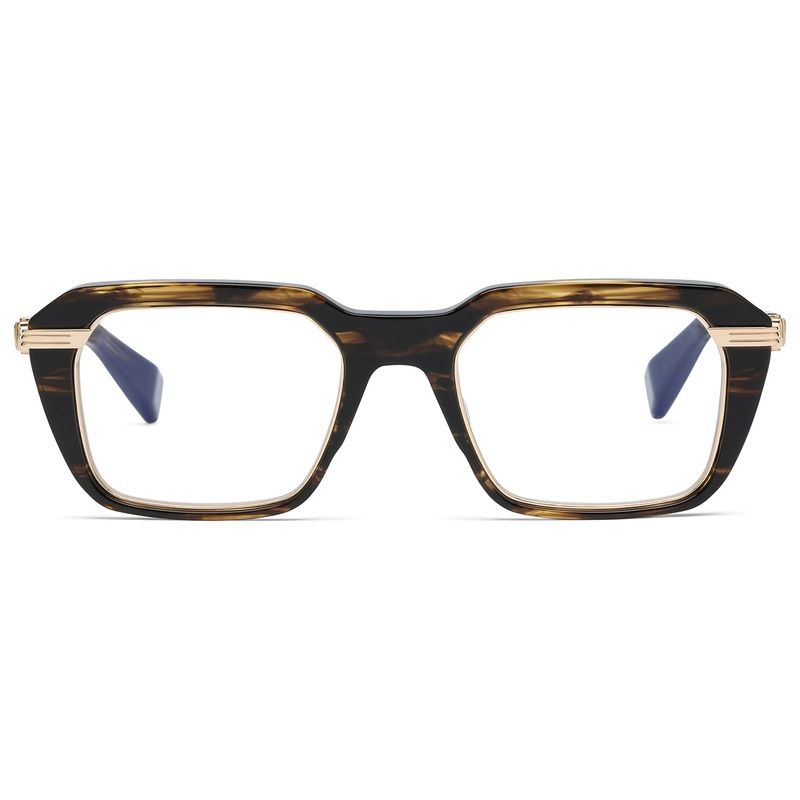 The Balmain Legion V presents a pared-back, everyday silhouette thats both understated and refined. Upon closer look, its Balmain heritage becomes unmistakable. Crafted with meticulous attention to detail, the Legion V features sharp, architectural angles, finely engraved lines, and an inner metal rim that speaks to the houses legacy of precision and savoir-faire. A pressed gold Balmain B monogram sits beside the frames distinctive floating hinges, offering subtle yet powerful branding. Available in three distinct colorwaysBalmains signature black and gold, a rich dark-brown swirl with 12k gold, and a modern crystal grey with black palladiumeach pair is a testament to the craftsmanship behind the design. Handmade in Japan. Includes Balmain box, hard case, soft case, cleaning cloth, and 1-year manufacturer warranty.