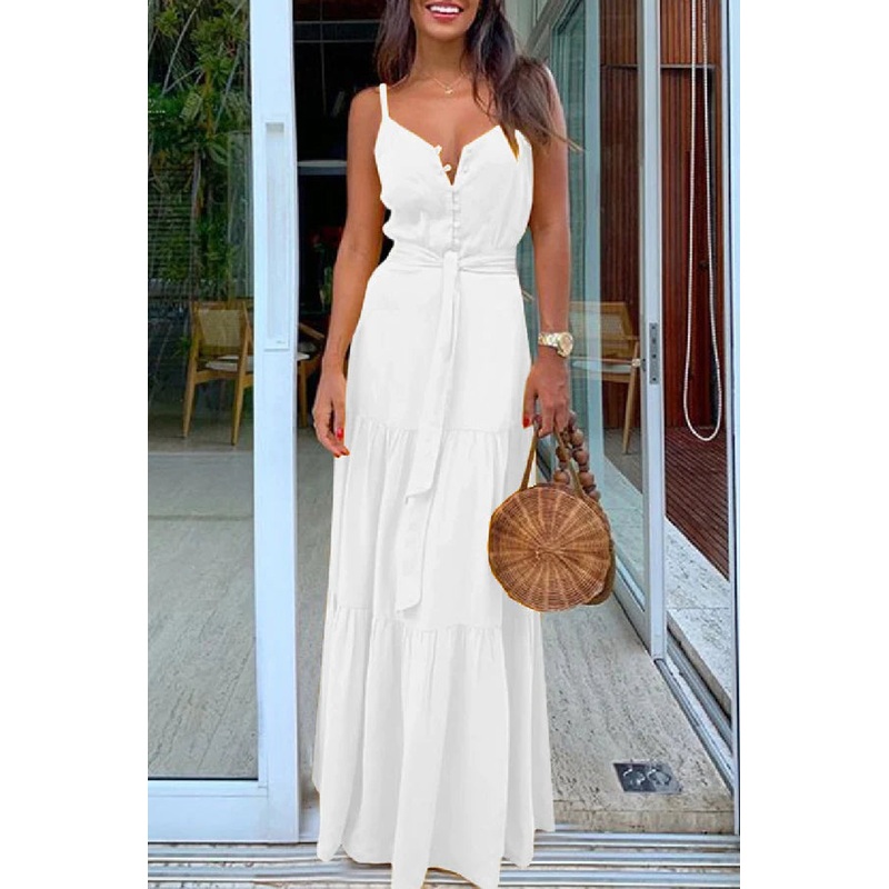 Leisure solid color backless thin shoulder straps for long evening dressing