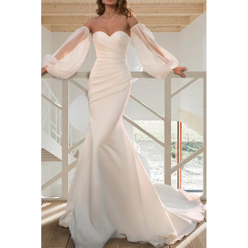 Leisure Wedding Dress Sweeping/Brushing Mermaid/Loudspeaker Long sleeved Summer Bridal Dress